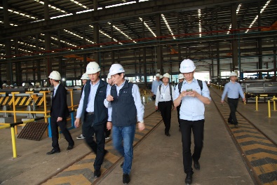 ? ? 當天下午,集團副總經理吳津生帶領與會人員就我公司高端高精鋁材首臺套重大短板裝備項目—輥底爐、鋁合金智能化精深加工生產線——汽車組件事業部生產車間、新能源汽車輕量化總裝生產線進行實地了參觀。